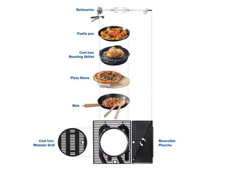 grilovacia plocha je tvorená obojstranným liatinovým tálom a liatinovým roštom Culinary Modular